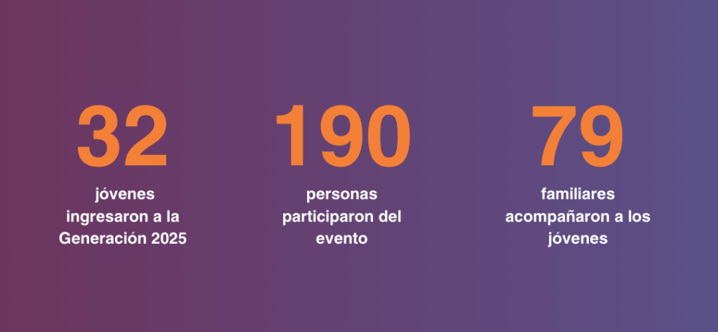 La bienvenida a la Generación 2025 fue un momento cargado de emoción, donde jóvenes, familias, voluntarios, coordinadores y empresas se unieron para dar inicio a un nuevo camino lleno de oportunidades.