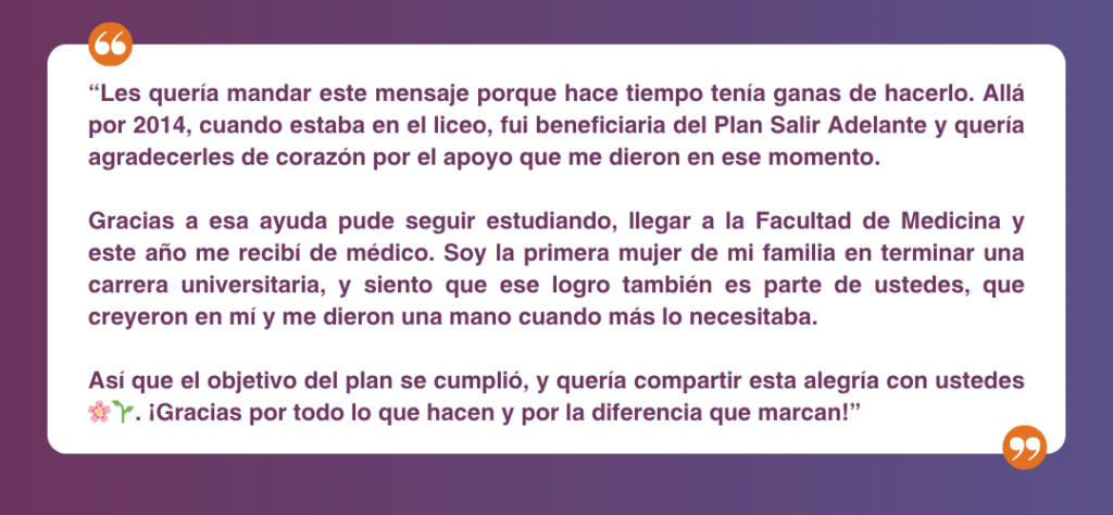 Su mensaje llegó por sorpresa, pero refleja todo el sentido del trabajo que hacemos en red, acompañando a jóvenes para que puedan construir un proyecto de vida propio.